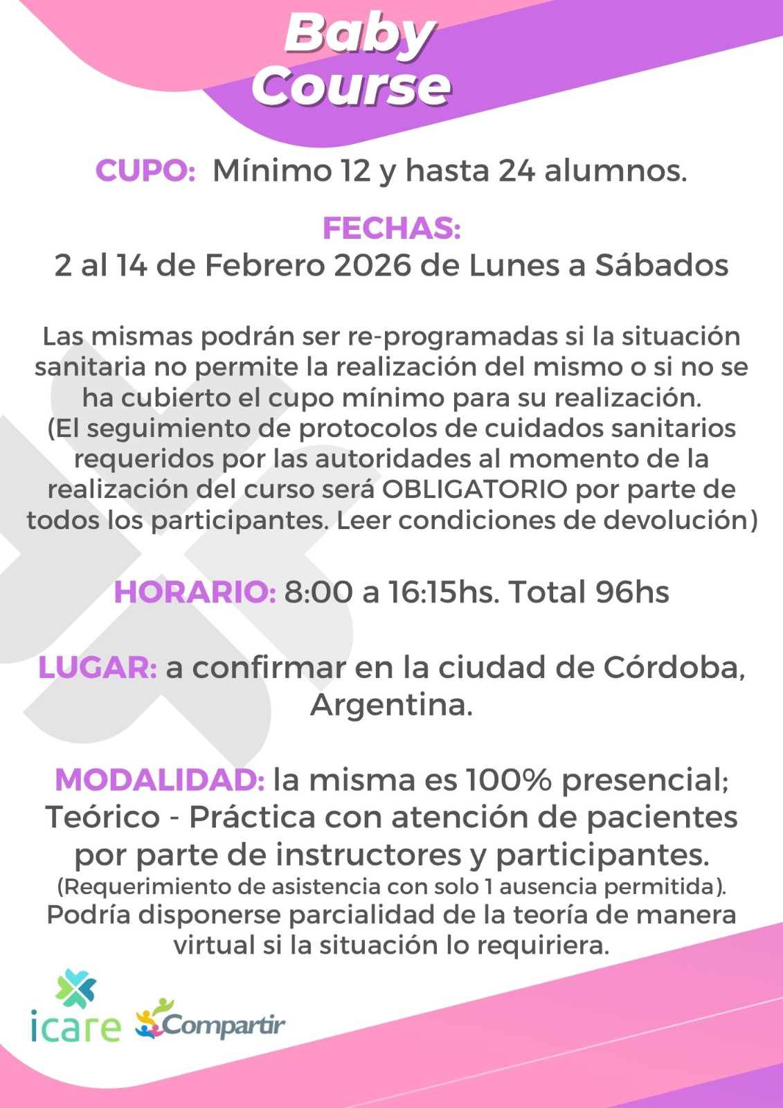 02 AL 14 de Febrero de 2026. Modalidad Presencial, Córdoba Capital. Organiza ICARE & COMPARTIR. Avalado por ATEN. Descuento de USD 100 para socios ATEN.