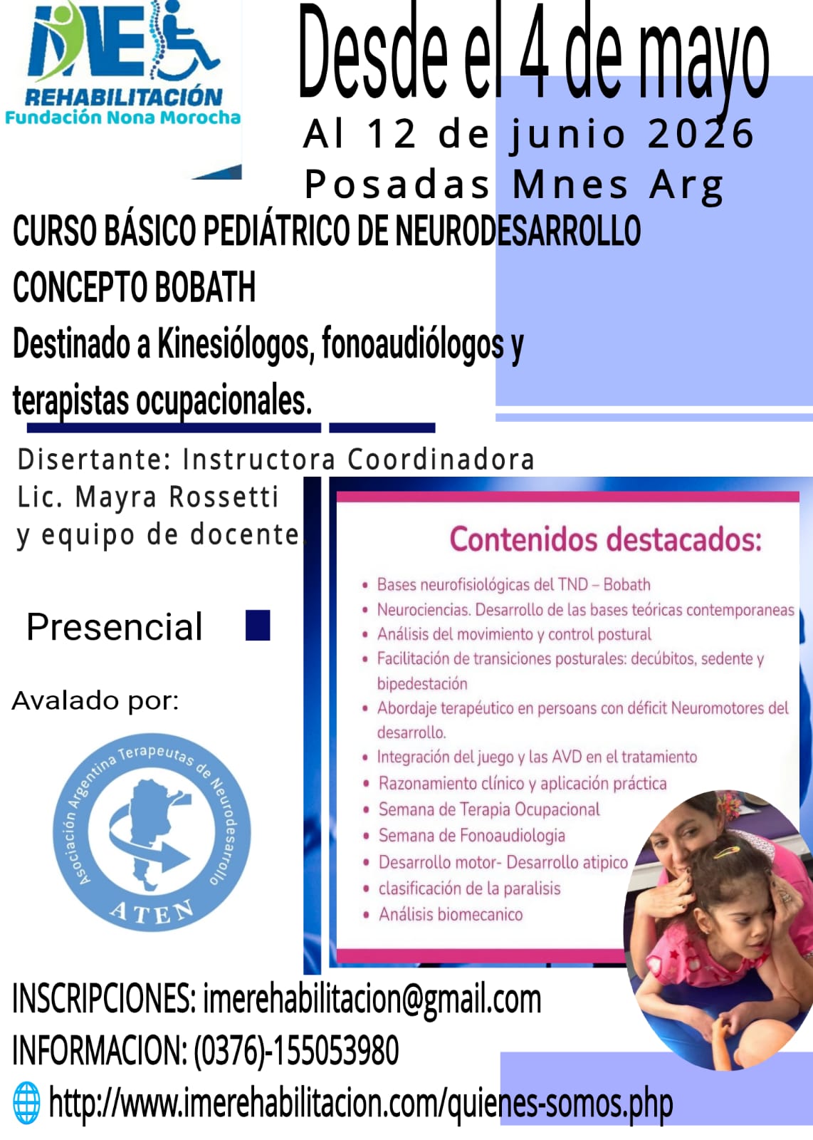 4 de mayo de 2026 al 12 de junio 2026. Modalidad presencial, Posadas, Misiones. Organiza IME Rehabilitacion.